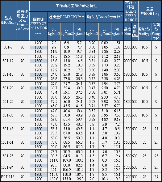 定量葉片泵浦(50/150T系列)
